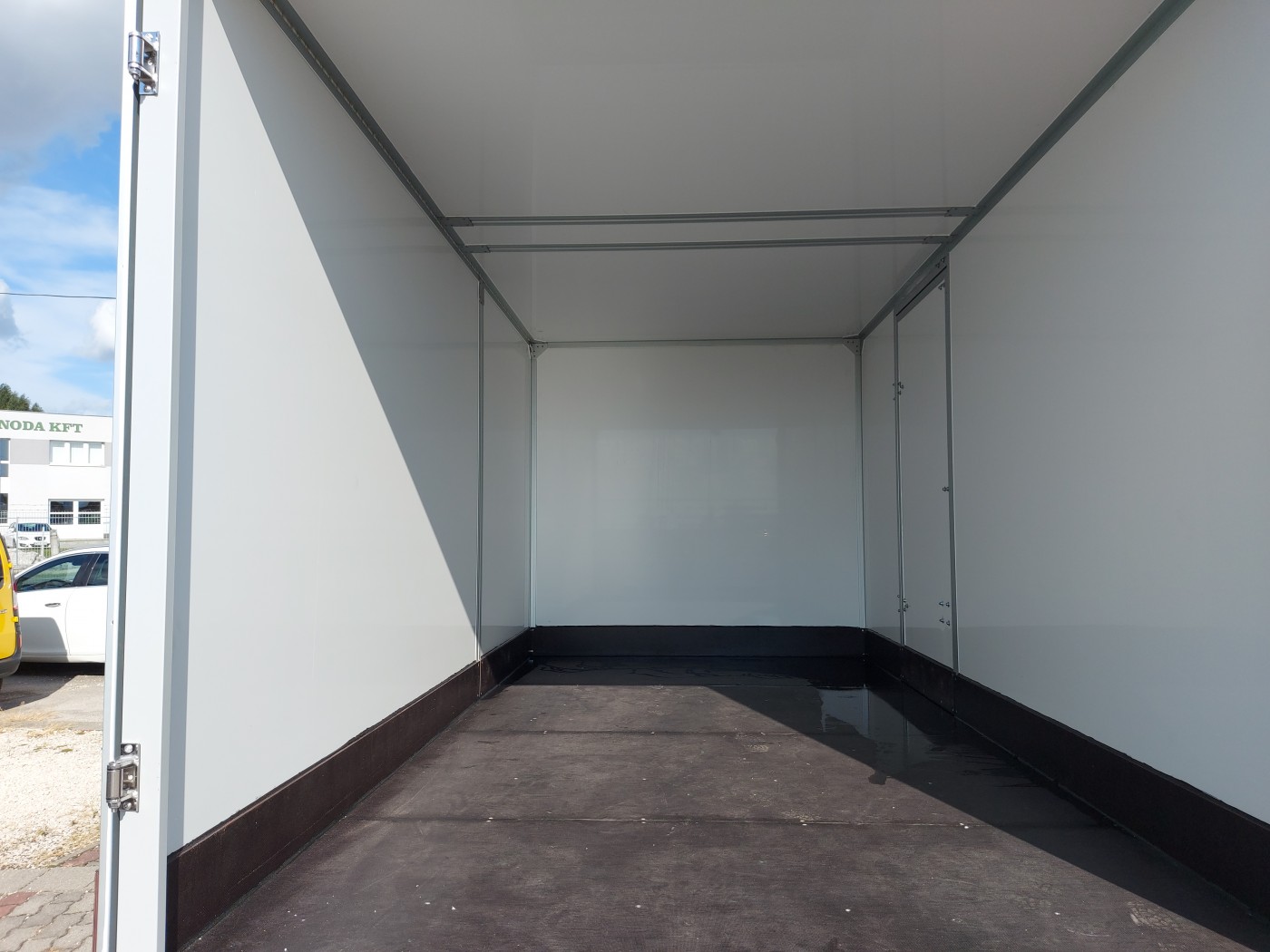 - Felépítmény: Új, mérsékelten szigetelt doboz+oldalajtó, belső méret: 4200*2100*2000 mm, belső világítás, hátsó fellépő+légterelő emelőhátfallal